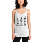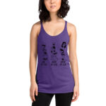 Vintage-Inspired DTG Printed Pinup Cartoon Racerback Tank that capture the essence of the iconic “See no Evil, Hear no Evil, Speak No Evil” proverb.