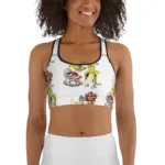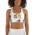 Embrace your wild side at the gym with our Chick’n’Monkey Melee Sports Bra. This isn’t just a bra; it’s a front-row ticket to the funniest workout you’ll ever have! Designed for those who take their fitness with a side of frivolity, our bra features moisture-wicking material and playful, animated characters that keep the mood as light as your post-workout endorphins. 🐵🐔🥊